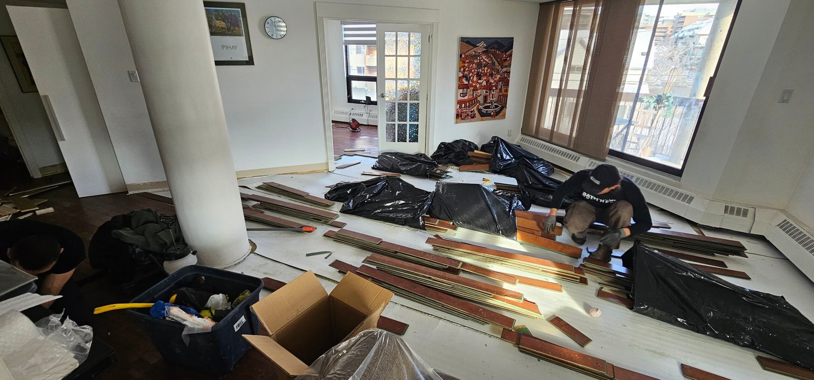Carpeting is pulled up and salvaged whenever possible. Wet padding may be removed and discarded to aid in the drying process.