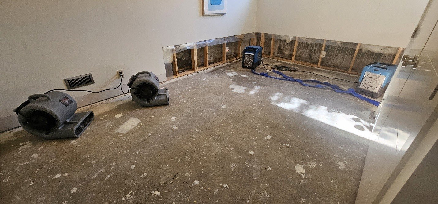 We use industrial dehumidifiers, air movers, and moisture detection tools to dry all affected areas. We also disinfect surfaces to remove bacteria and prevent mold growth.